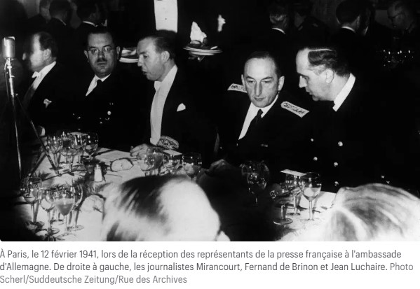 Soucieux de plaire à son ami allemand, son journal se transformera peu à peu en officine allemande. Ce sera une période bénie pour ce patron de presse qui bénéficiera à la fois du soutien financier des Allemands et de celui des Pétainistes de Vichy. Notre Temps deviendra au passage une revue inconditionnellement favorable à HITLER, à sa politique révisionniste et même à son antisémitisme. Mais certains trouveront le nouveau patron de presse bien changé, l’ancien socialiste pacifiste se montrant séduisant et jouisseur, cyniquement noceur et, en outre, d’une paresse incommensurable. Déjà propriétaire de divers biens immobiliers, Jean LUCHAIRE achètera une propriété à Vernon puis rue Saint-Lazare à Paris et à Barbizon. Lors de ses fréquents séjours dans cette demeure, il y organisera des fêtes recevant ses amis du tout-Paris, Français et Allemands, sous la protection bien entendu de la Kommandantur locale. Le 26 mai 1941, dans les salons parisiens de la Tour d'argent, le gratin de la collaboration fêtera même cet arriviste qu'était Jean LUCHAIRE. Patrons de presse, producteurs, ministres, petites amies du cinéma comme Yvette LEBON ou Mireille BALIN, officiels allemands et noceurs du Tout-Paris célèbreront l'apogée journalistique du plus grand communicant de l'époque. Y paraîtront Pierre LAVAL, Fernand de BRINON, des écrivains vendus et où, entre deux exécutions d’otages, les STULPNAGEL viendront essuyer leurs mains sanglantes aux rideaux, avant de prendre des petits fours. En quelques années, Jean LUCHAIRE sera devenu l'archétype du traître mondain, et pire, le bouffon de cour vendu aux Allemands, tout simplement par amour de la dolce vita, du luxe et du pouvoir.