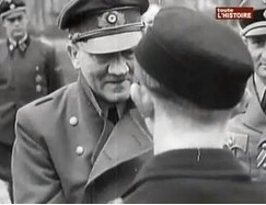 Le reportage de Guido KNOPP réalisé pour Toute l'Histoire est édifiant. Waffen SS, Jeunesses Hitlériennes... la machine à détruire nazie aura broyé avec un cynisme incroyable des centaines de milliers d'adolescents qui agissaient sans toujours savoir ce qu'on leur demanderait comme ces jeunes Alsaciens enrôlés de force dans la Waffen SS qui iront jusqu'à commettre l'irréparable à Oradour-sur-Glane le 10 juin 1944 et que l'on finira par relaxer après qu'un tribunal militaire les eut cependant jugés en 1953 à Bordeaux. A Berlin, au cours des derniers jours du Troisième Reich et de leur assaut final, les Russes découvriront des gamins qui n'étaient pourtant pas décidés à capituler et qui leur rendront la vie dure jusqu'aux derniers instants ! Comme ce jeune naïf (photo ci-contre) qui se verra récompensé par un HITLER souffrant de la maladie de Parkinson. Jusqu'au 2 mai 1945 et donc bien après le suicide de leur Führer, des jeunes gens continueront à Berlin à se faire tuer et à résister à l'Armée rouge, en croyant qu'ils finiraient par gagner ! Monstrueux !