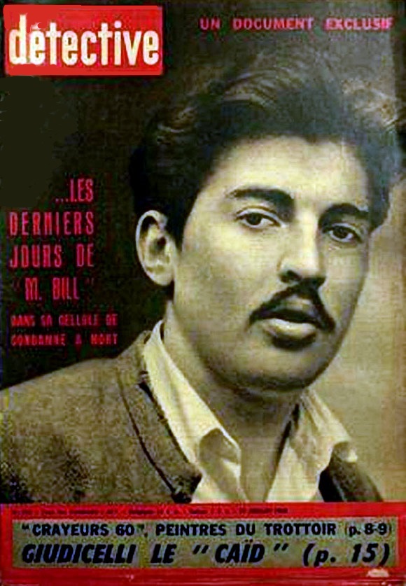 Au début des années soixante, la guillotine ne chômait pas et il n'était pas rare qu'on y fasse appel pour trancher la tête d'un condamné. Georges RAPIN alias Monsieur Bill auteur d'un meurtre répugnant ne sera pas le dernier à avoir la tête tranchée, lui qui rêvait d'avoir un destin de gangster, et d'être un héros de série noire au point d'avoir organisé la médiatisation d'un personnage que reniaient les caïds de Pigalle ! Alimentant la presse populaire des faits-divers, l'homme aura longtemps éclairé les photographies de Détective et de France Soir en se présentant sous les traits de l'homme sulfureux qu'il se plaisait à camper, lui qui n'était pourtant qu'un fils à papa sans personnalité. Le magazine Détective lui consacrera d'ailleurs plusieurs couvertures dont celle publiée ci-contre.